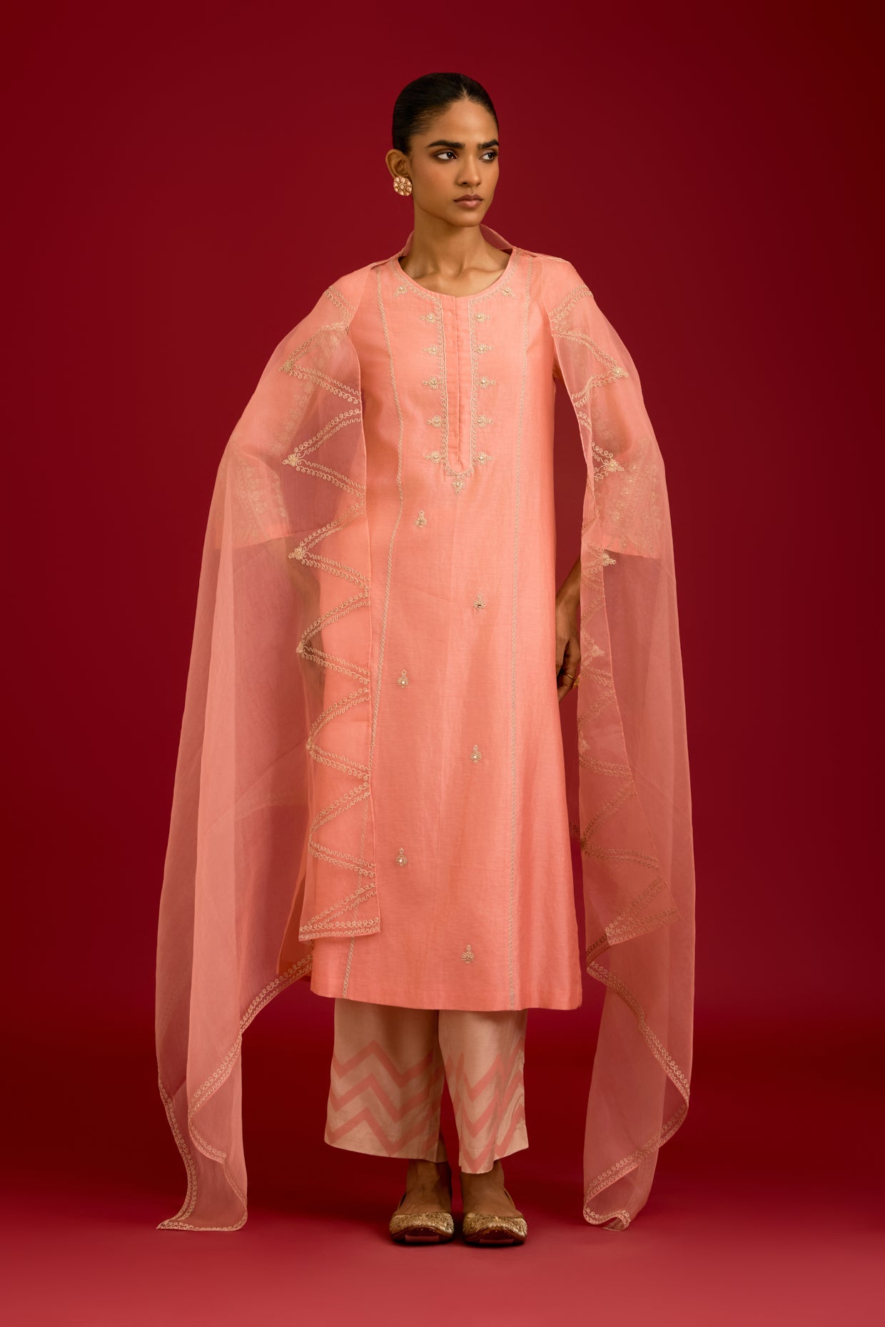 Pink Cotton Silk Blend Embroidered Kurta Set