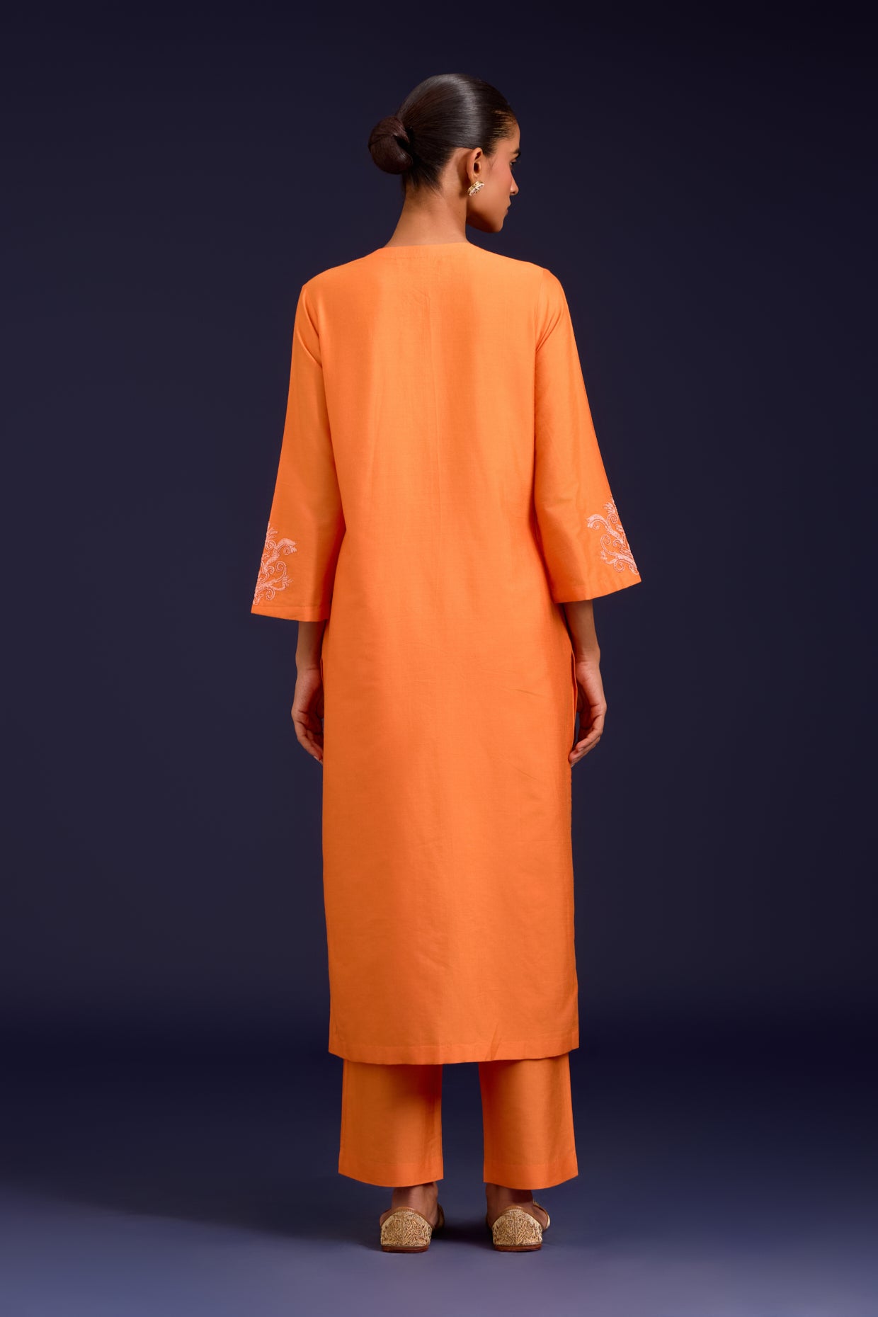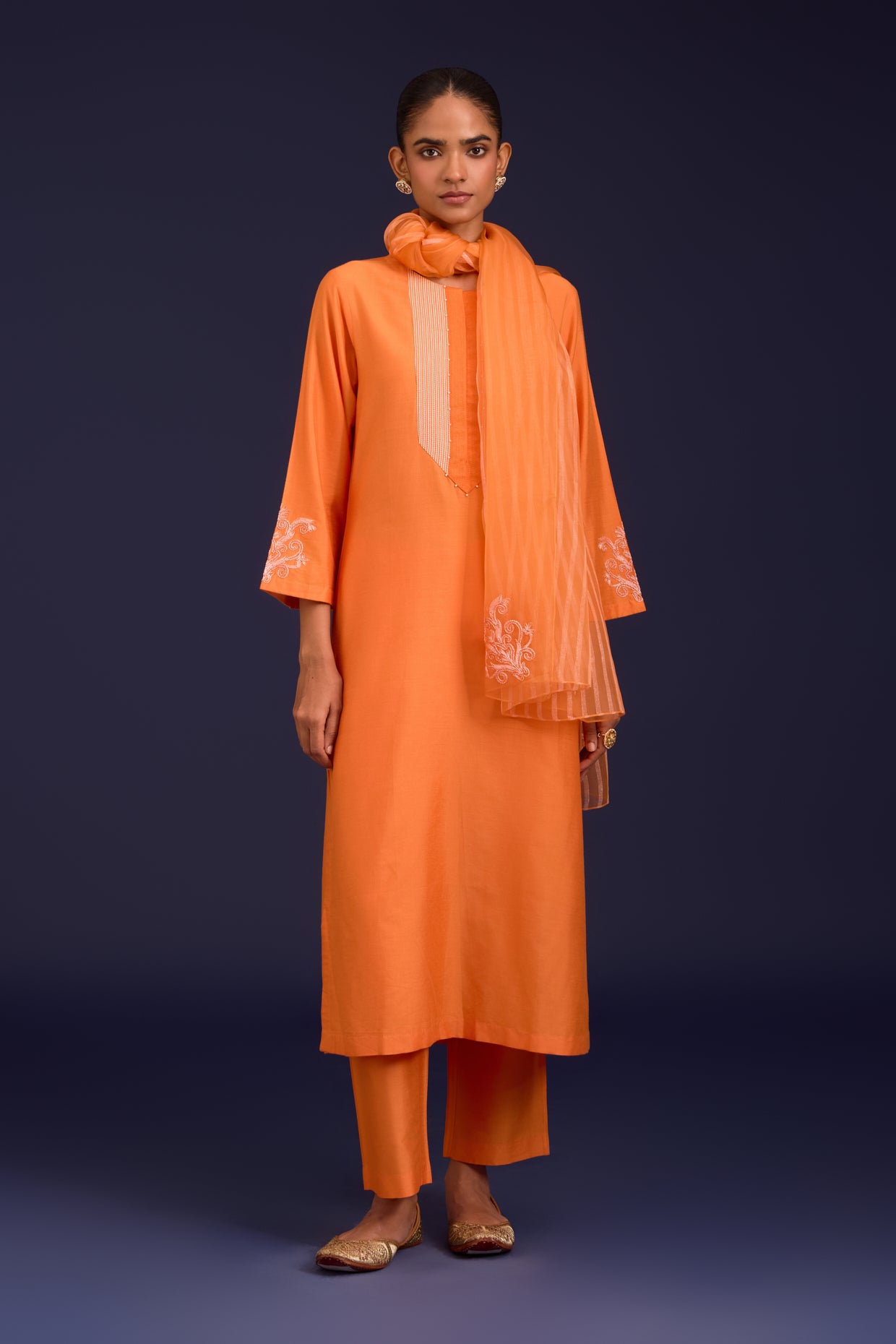Orange Cotton Silk Blend Dori Embroidered Kurta Set