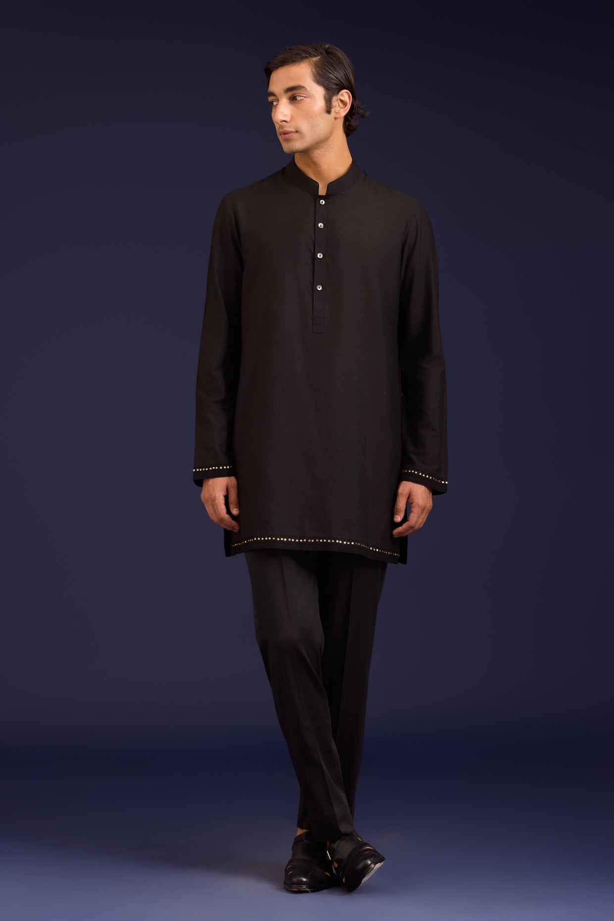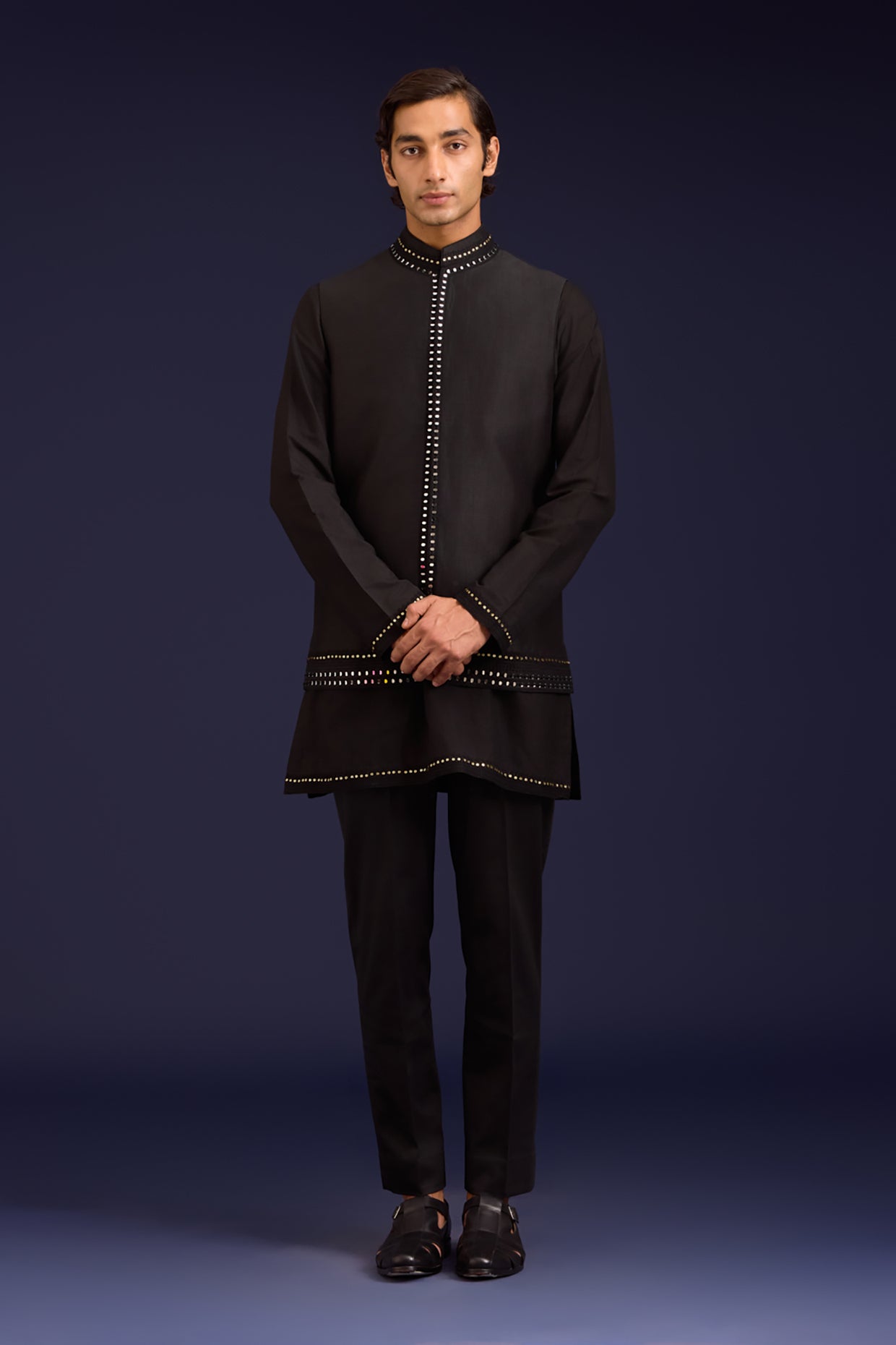 Black Linen Satin and Cotton Silk Blend Bundi Set