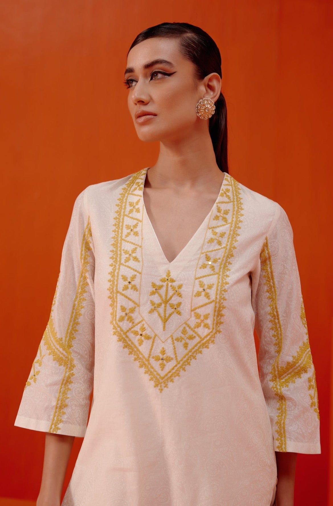 Ivory and Mustard Embroidered Kurta Set (RTS)