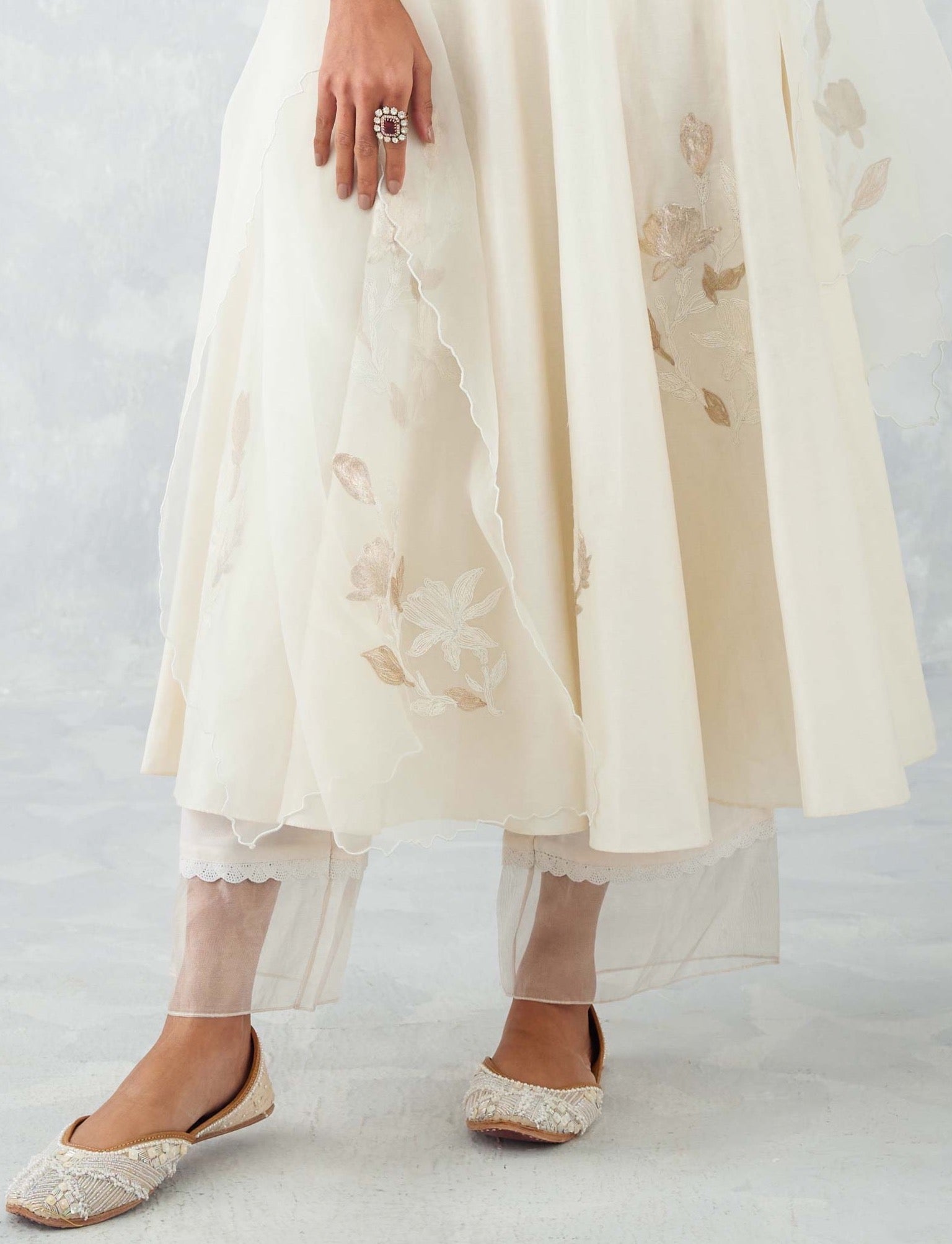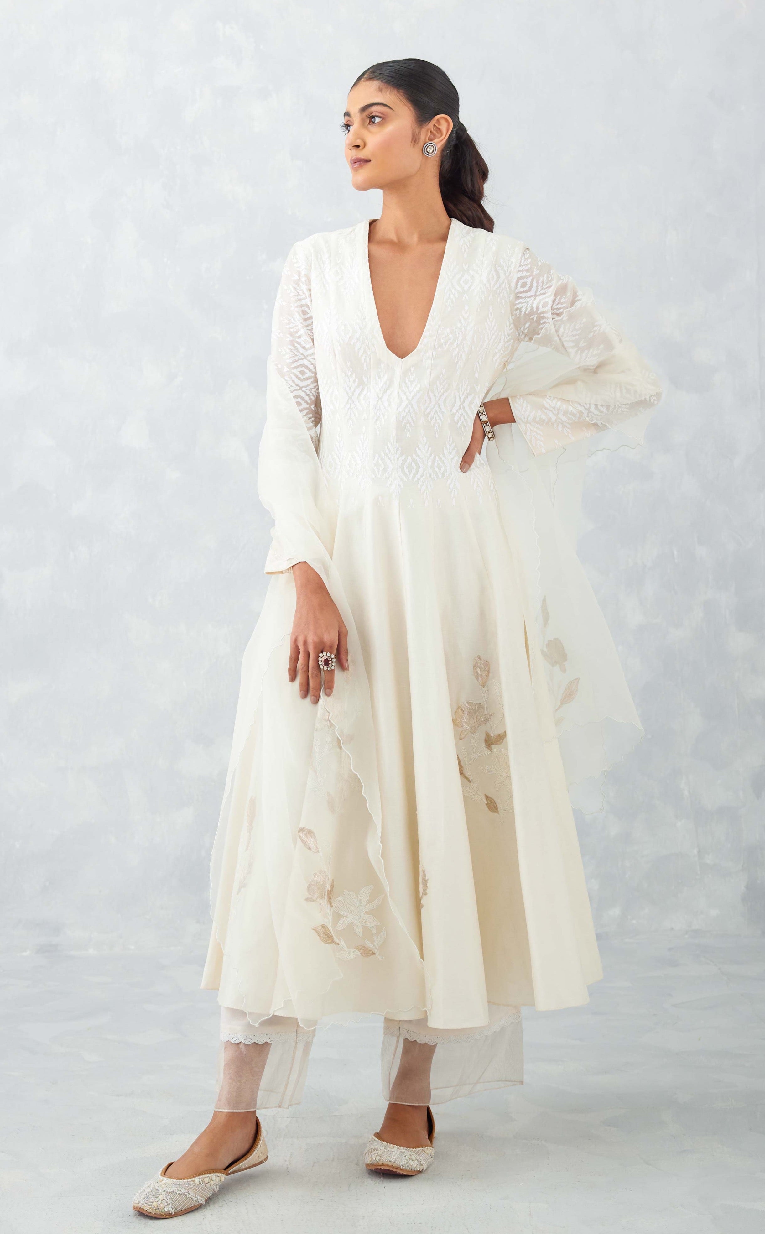 Ivory Embroidered Chanderi Anarkali Set (RTS)