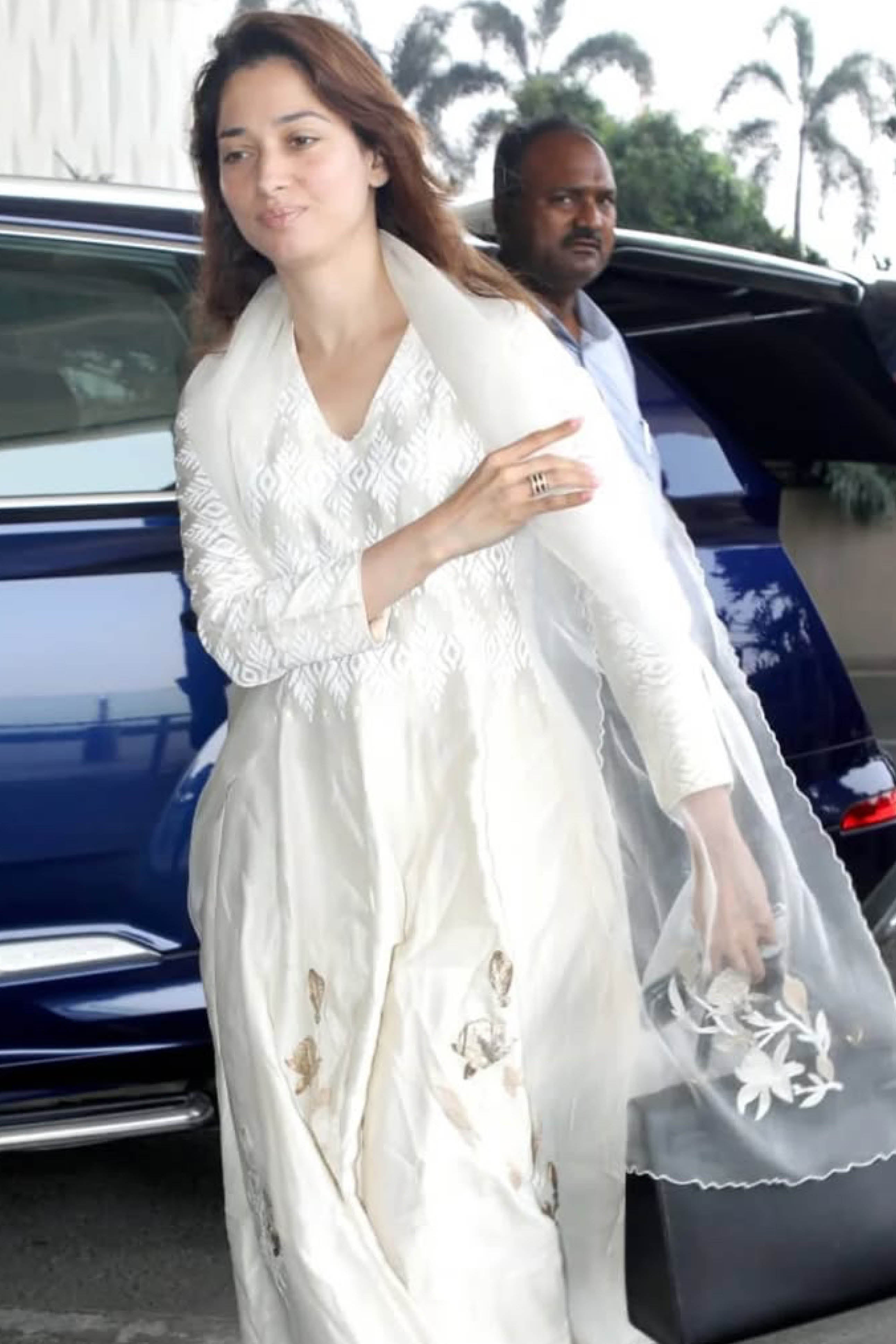 Tamannaah Bhatia in Ivory Embroidered Chanderi Anarkali Set